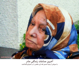 «من فدای همهی مادر خونین کفنان» ![]() مادر را پس از سالها دیدم، نشسته بر صندلی چرخدار در خانهی سالمندان. مادر از بیماری آلزایمر پیشرفته رنج میبرد و دیگر کسی را نمیشناسد. پیشتر در ملاقاتهای زندان دیده بودماش. همراه با مادر و پدرم به زندان میآمد. تعریفاش را بارها، هم از خانوادهام، و هم از فرزندش شهنام، در زندان شنیده بودم.