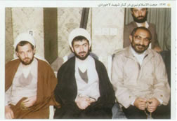 نفر وسط حسینعلی نیری. پشت سر لاجوردی، اصغر فاضل سربازجو و یکی از شکنجهگران اصلی شعبه ۷ نشسته است. وی بعدها منشی گیلانی در شورای عالی قضایی بود.